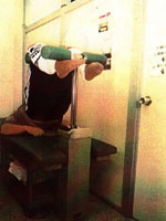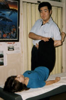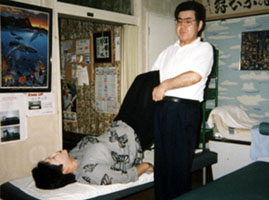 改善され、筋肉や靭帯の緊張がとれ、血液の循環がよくなり、患者が腰痛を感じることが少なくなります。 ニーアップベッド考案前は、次のような操作により施術していました。 |